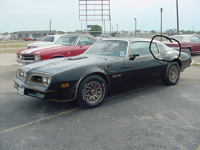 I thought it wasnt a true bandit by the fact there is a emblem instead of a decal where i circled the car. My last ride was a 79 bandit tribute car that i sold to my sister-in-law. I havent seen a 77 bandit in a few years now. Still great score man