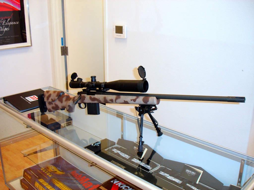 Remington PSS .308.. Leupold 8-20x illuminated reticle mildot scope, ARMS mounts and rings, HS precision bedded adjustable stock, Magazine conversion, adjustable trigger, Machined chamber and bolt with titanium firing pin, Machined barrel with several matched brakes and flash hiders, adjustable bipod... it shoots better than me