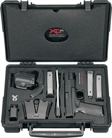 I picked up a new Springfield XD-M 9mm 4.5 inch barrel competition pack today for my son's birthday! He is turning 17 and has been using my guns for IDPA. It is high time for him to have a rig of his own. It came with a paddle holster, 2 magazine belt holster, 3 19rd magazines and a speed loader. It is a very nice gun and I can't wait to see him shoot it next week once he gets it.