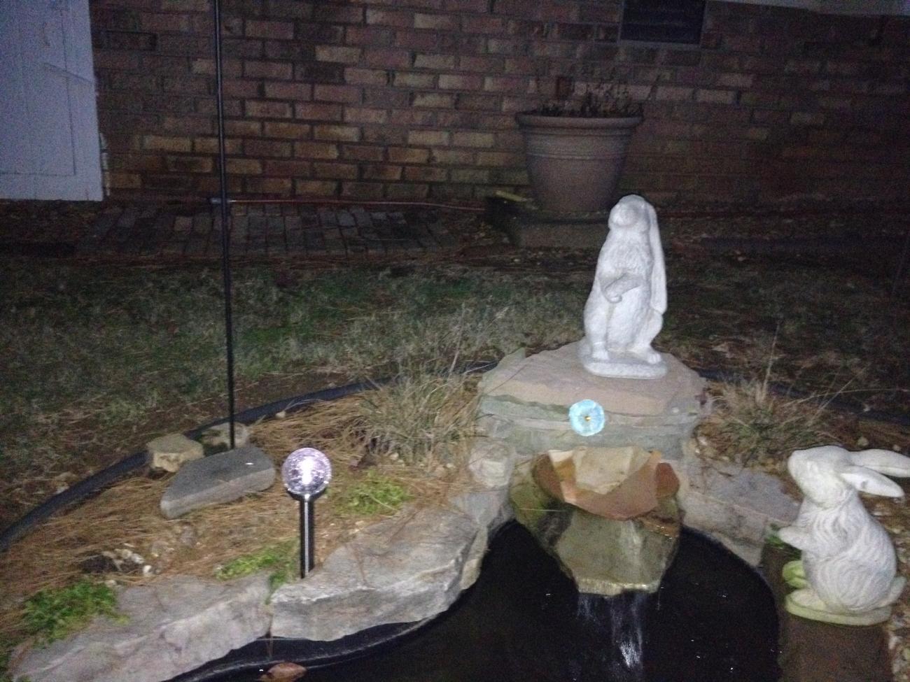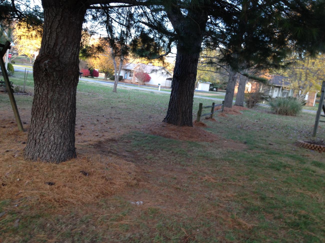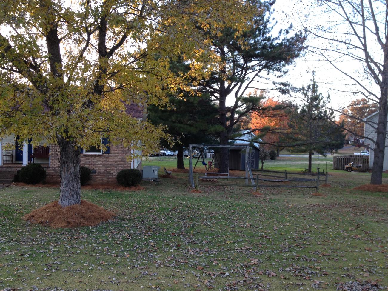 Well today was spent washing Ruby & doing some yard work. With this cold snap coming our days will be limited for getting things done. Mike will have to wash his Camaro Monday or Tuesday after work. Mike put out some new lights around the yard & raked up some pine needles. Then I hauled the pine needles to be used as mulch around trees & shrubs in the yard while Mike cooked us some hamburgers on the grill. We wanted to start a fire in the fire pit but ran out of day. We still have not had a chance to initiate it. Here area few pics from the yard.