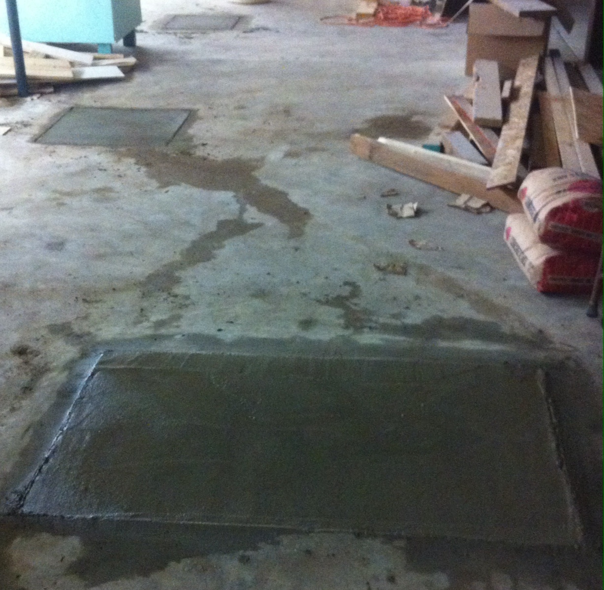 Had to wear a different hat today. Had to fill four sump drains with sand and top them off with cement. They seam to have turned out ok. Should be able to park cars over them now.