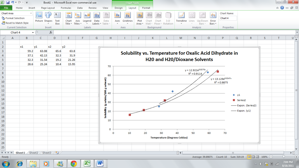 What are your "R^2" values on those correlations? I didn't think solubility was an exponential curve.