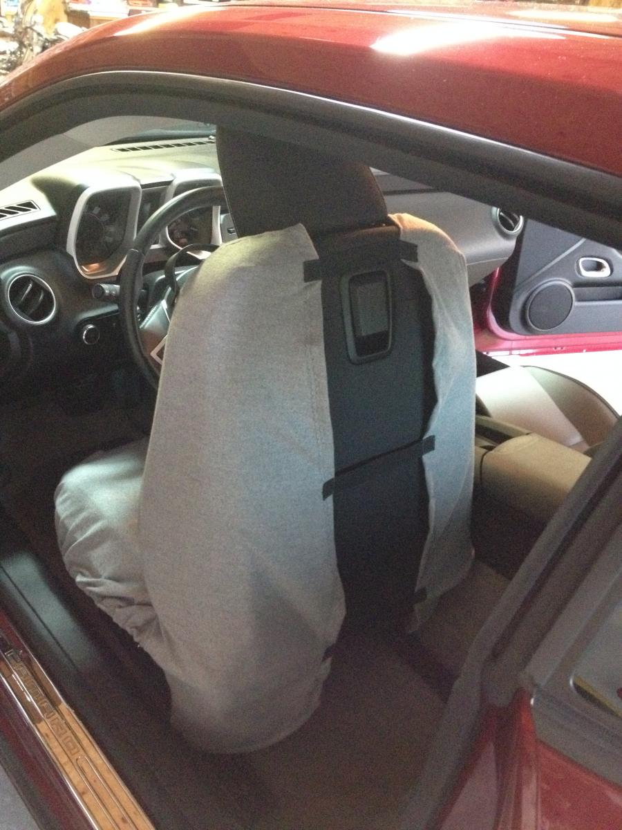 Well it took me a little over 8 hours but I had no miss-steps & it went smoothly. Not sure that has ever happened on any sewing project or significant craft especially given that I had no pattern or instructions just making it up. I used newspaper to fashion a rough pattern than cut the material, pinned it together in the car seat, then sew a while go back try it on the seat again, pin some more, sew some more........................after a while, it is a seat cover.