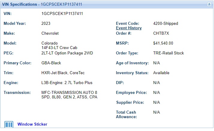 Are you able to see when that one was produced? I know someone on the facebook group has a 4WD TB built 2/28 that hit 4150 today. My Z71 on order CFTH77 was built 2/6, so i am assuming it is 4150 too if a 2/28 is, so i wonder when that one you see was built.