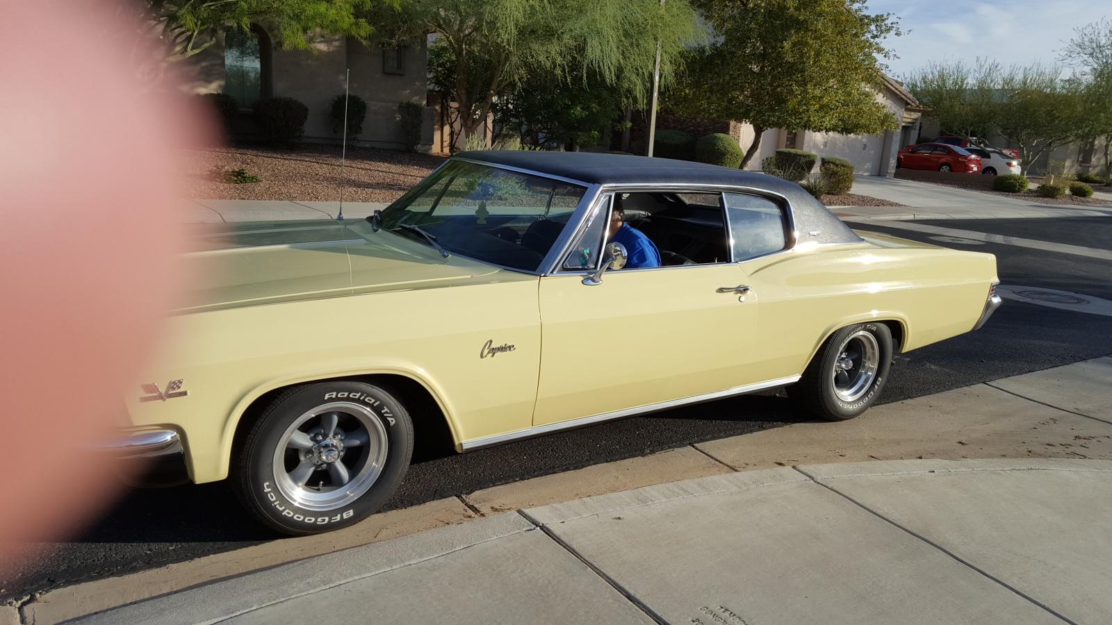 ![]() Here it is! Has a slightly modified 427, turbo 400 trans, 12 bolt rear with 4:10 gears, and working AC. Pics are on my phone, but I only took two. I was pretty excited!