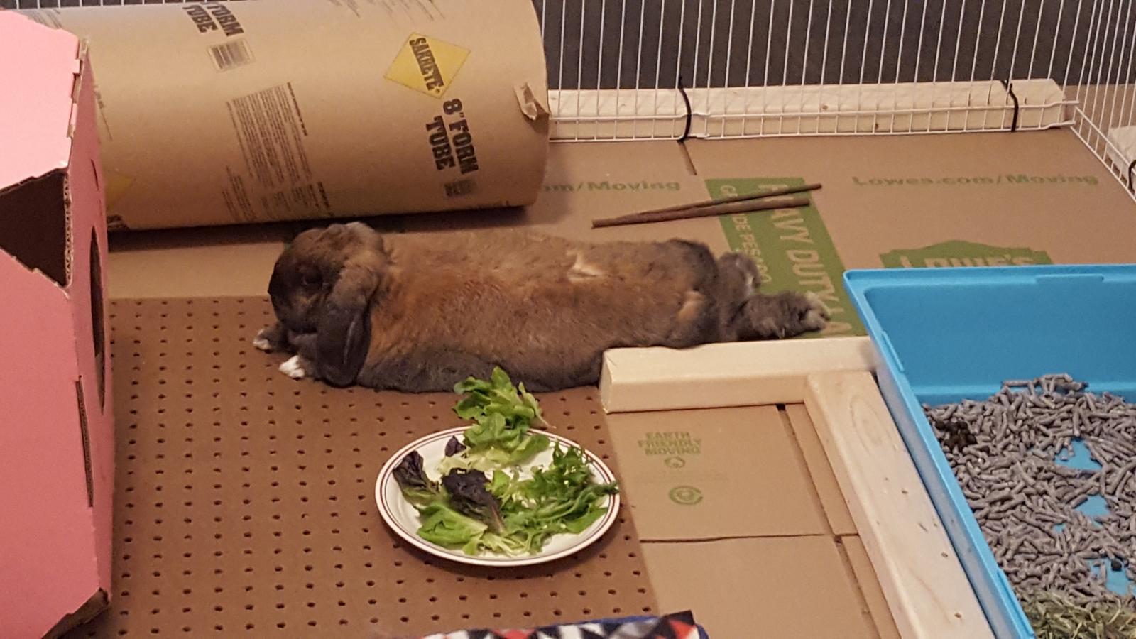 In the mean time, Ruby Rabbit had started walking funny & not putting any weight on her right back leg. Took her to the Vet. Well, the good news is, no broken bones or displaced joints or vertebra. That would be really bad as rabbit bones are thin & brittle like chicken bones & very difficult to impossible to repair/heal. However exact diagnosis/prognosis is unclear. There was evidence of some past spinal injury & some build-up of stuff around that but not bad & no evidence of arthritis. It could be an aggravation of past injury, some sort of nerve damage or just some sort of sprain or soft tissue injury. She is on cage rest (or in her case pen rest), no jumping, & getting pain/anti-inflammatory meds. Then just watch & wait. Hope she improves.