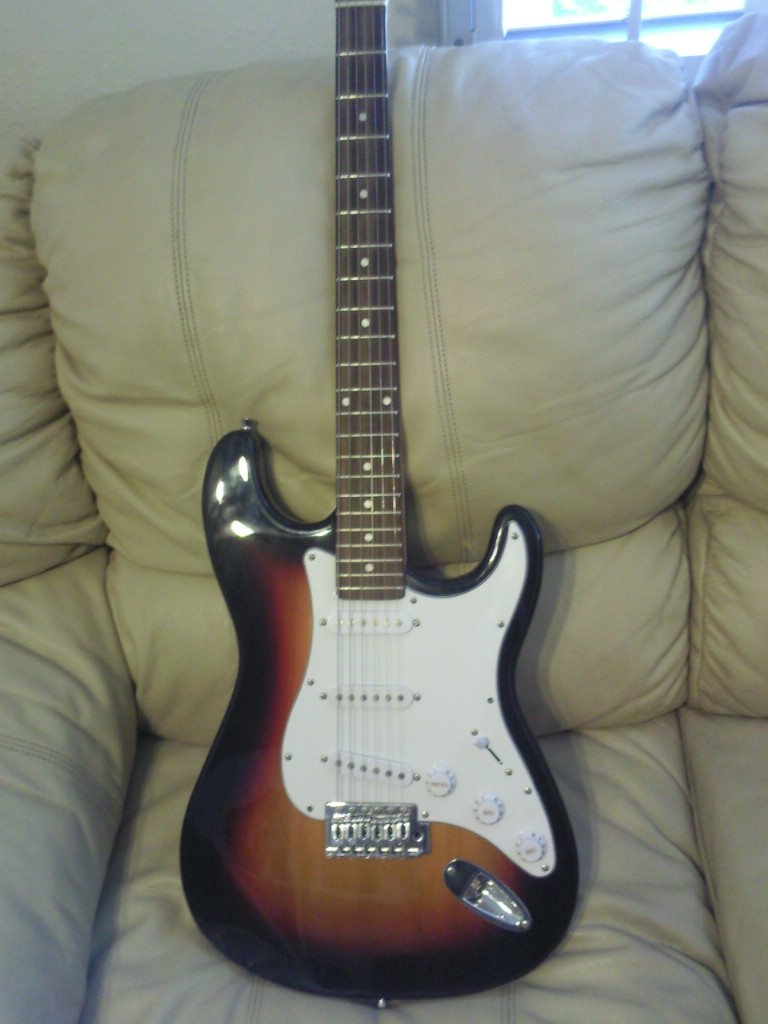 I'm convinced it's some starter Squire, but considering the neck was replaced before I bought it, I may never know. I might have gotten lucky and it's a full-blown Fender, but considering I got it and the amp for $80, I would be surprised if this held true. Nonetheless, it's been a great guitar, and I love it. ![]() My whatever-the-heck-it-is: