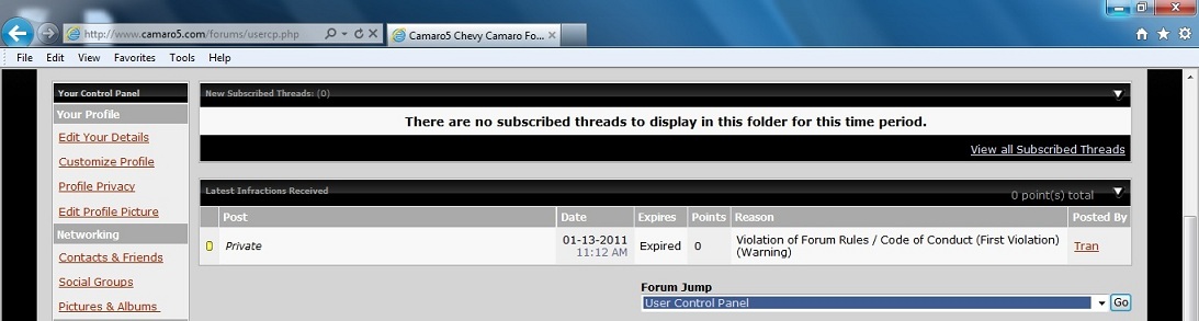 one day i hope to aspire to be as cool as ibeck Private Reason: Violation of Forum Rules / Code of Conduct (Second Violation) (10 day ban) 06-15-2011 06:04 PM by radz28 3 / Expired Private Reason: Violation of Forum Rules / Code of Conduct (First Violation) (Warning) 06-15-2011 02:45 PM by radz28 0 / Expired Private Reason: Violation of Forum Rules / Code of Conduct (First Violation) (Warning) 02-14-2011 05:15 PM by DGthe3 0 / Expired