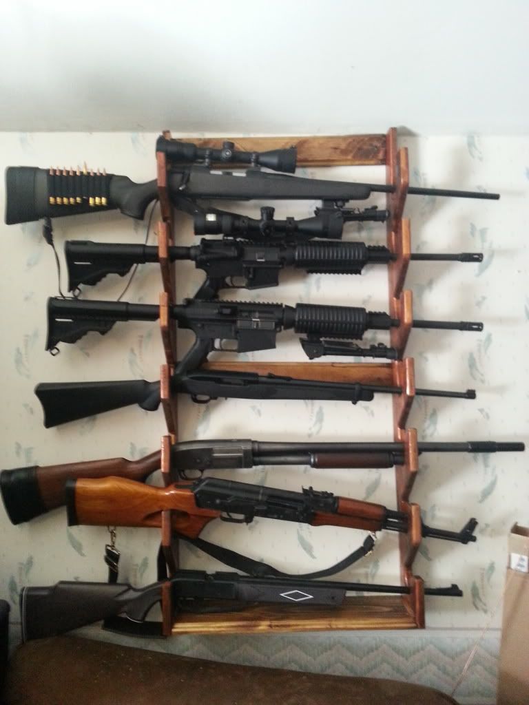 Here is my collection of weaponry. .270, AR 15, AR 10, 10/22, 12 guage shotgun, Ak 47, and my BB gun