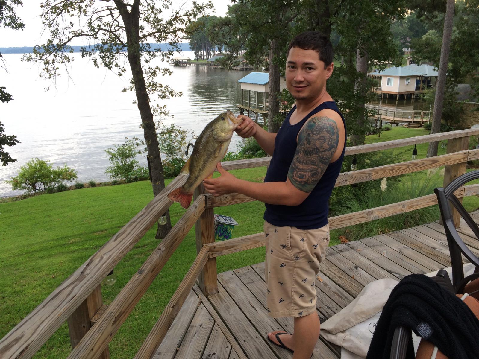 The best this weekend was this 19.5" large mouth bass. Caught it on a rat-l-trap... lost the lure on a downed tree and kept catching other bass on a jointed crank. Fun weekend! Definitely less preparation than saltwater fishing and cleaner!