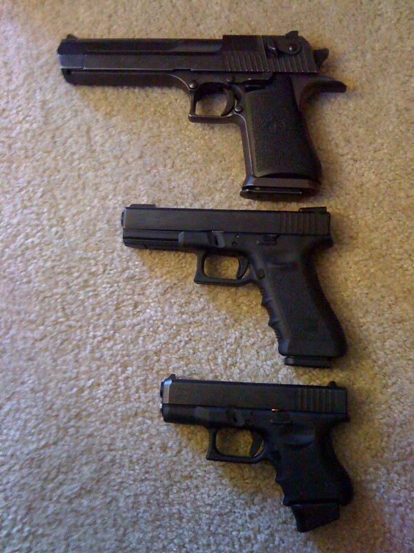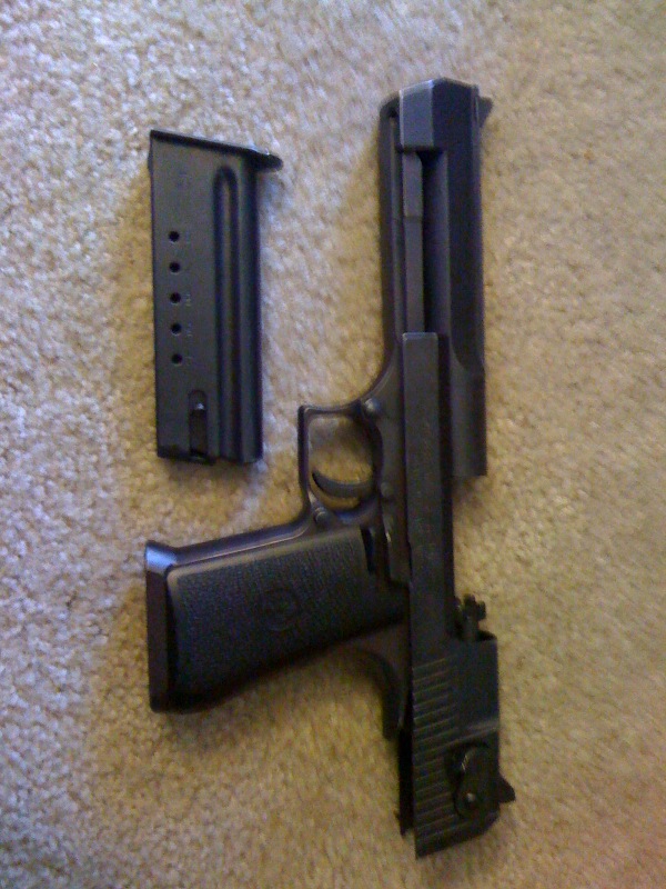 I also have a Desert Eagle .44 Mag, but that's a little big to carry around, it's more of a conversation piece then anything...lol.