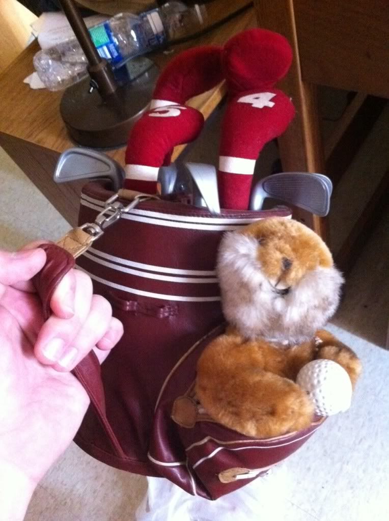 On a drunken night out I traded a bum a dollar and two cigs for a squirrel carrying a golf bag, supposedly from Caddyshack. I tried to give it as a present, she didn't want it though. I'll upload a pic in a second.