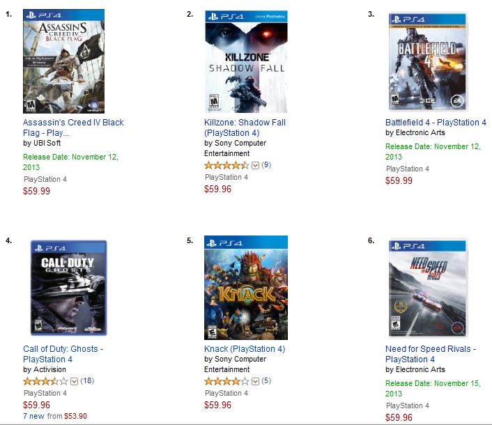 I was in target yesterday looking at the games, I did not see one ps4 game on the shelves, as for your list mlee I like the bottom row, I already picked up ghosts as well and knack I might pick up at launch and can't go wrong with a need for speed title Last edited by MikeMoach; 11-11-2013 at 10:35 PM. |