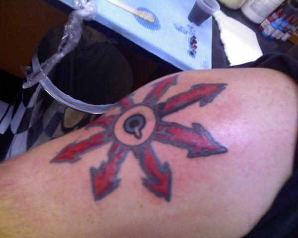 Haha, noice. I've never played, my tattoo is based more in the metal community. Bands like GWAR and Sepultura have been incorporating the chaos symbol into their image since the 80's.