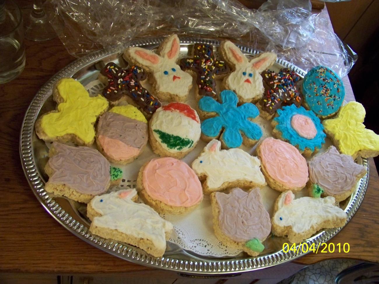 Old pics but here are a few of my best creations from Easter a couple of years ago. My layered salad done up extra cute & Easter Rice Crispies treats (a favorite of my son).