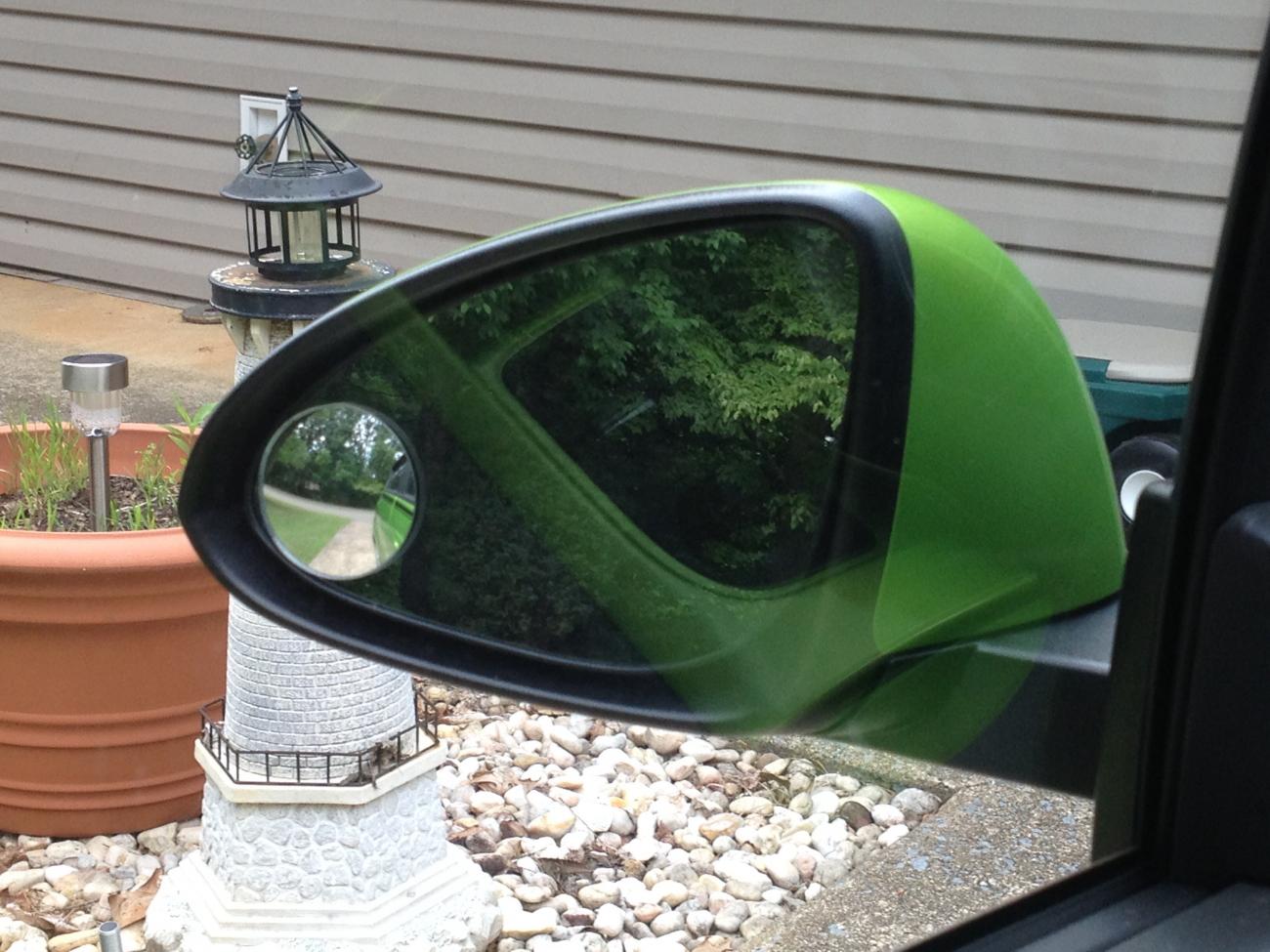 I noticed that the Spark seems to have worse blind spots to the sides than the Camaro does. It is probably due to the shape of the side mirrors. I have been looking for some decent spot mirrors but they all seem too large. I ended up taking the mirror portion out of the frame of two spot mirrors and just used them.