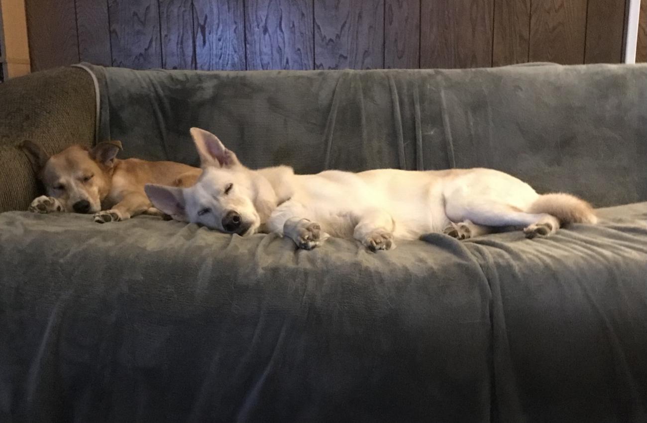 We have 2 well behaved but really goofy mastiffs. An English Mastiff (Moose) and a Dogue de Bordeaux pup (Angus).
