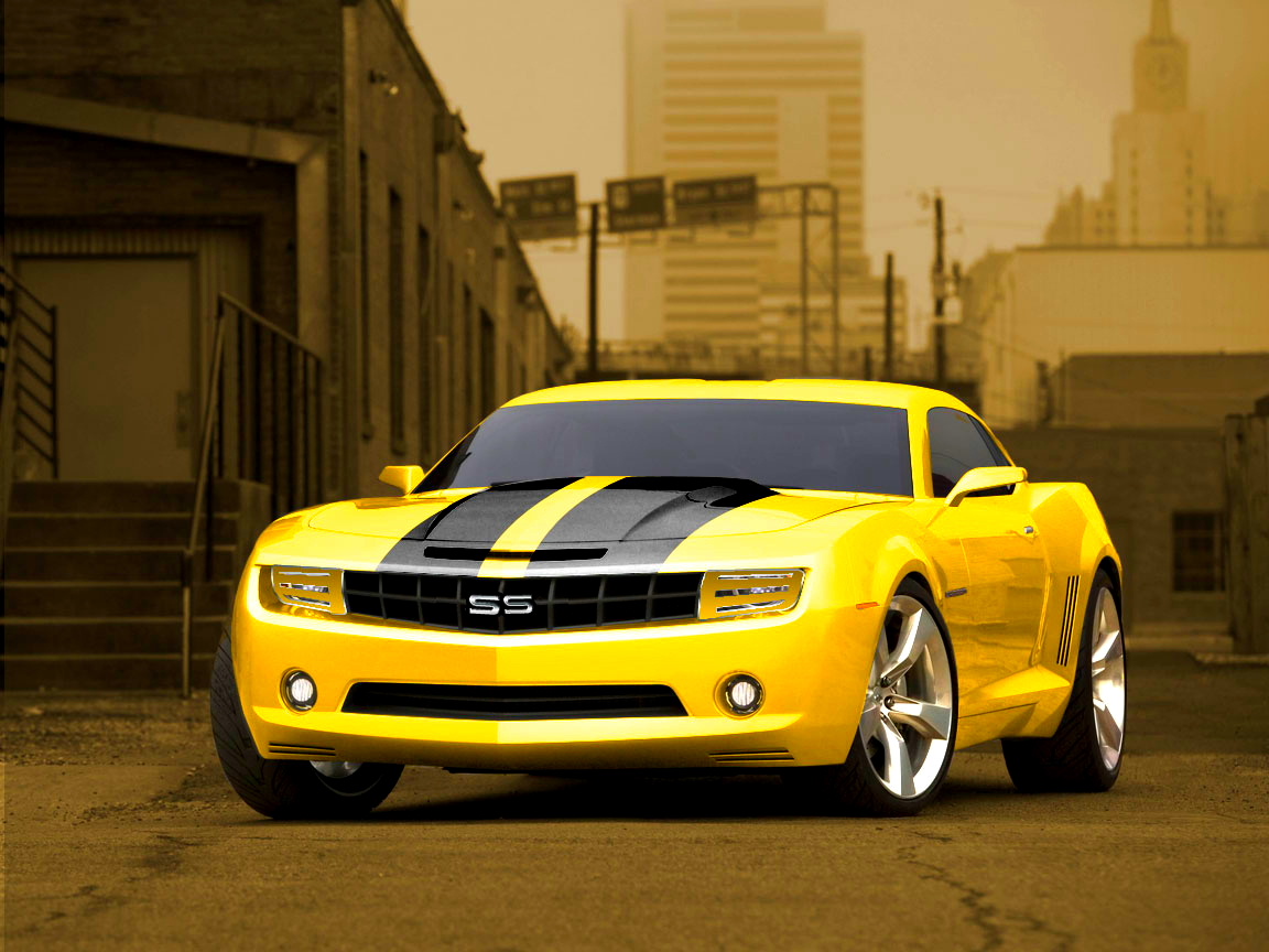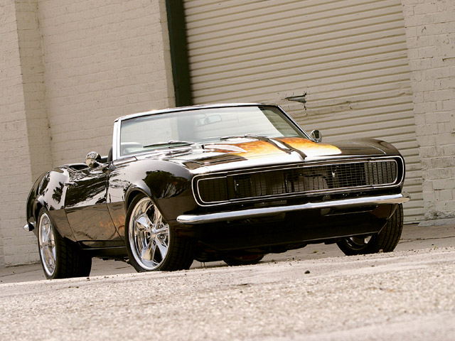 68 camaro convertable rs/ss 396 black with flame stripes 70 chevelle ss 454 dark blue metallic with silver raceing stripes 09 camaro supercharged bumblebee 10 camaro convertable metallic blue silver racing stripes concept cadillac cien sunset orange metallic