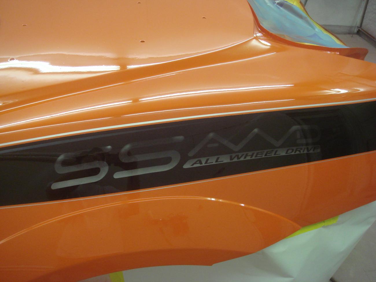 All of the stripes are done and the tricoat pearl has been sprayed.