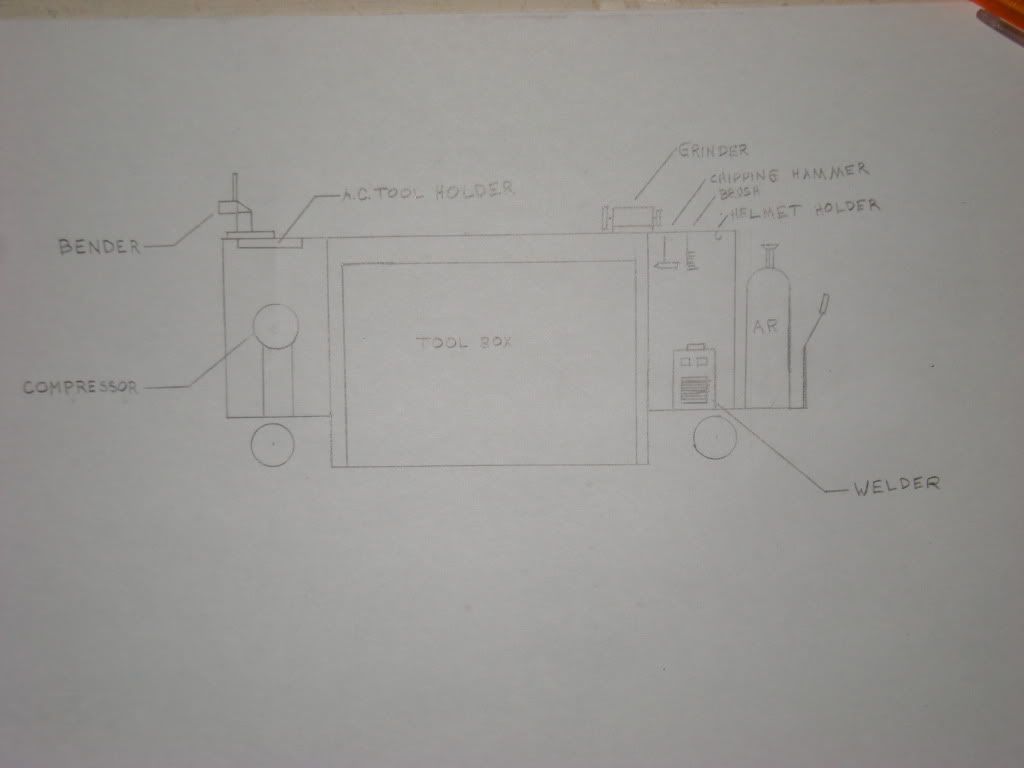 ok, this is just the first rough sketch..... kinda rushed and a bit sloppy.... but you get the idea ![]() ![]() basically, I'll have a giant piece of 1/4" steel plate as a top for the table.... build the entire frame out of 1-1/2" square tubing with a tool chest under the center section. I'll mount my air compressor on the left side over the back axle with a spot to hang all my pneumatic tools from. On the right side, I'll mount my TIG welder under the table with spots just beyond the edge of the table to mount the Argon tank.... and a spot next to the tanks (across the shorter edge of the table) to mount an Acetylene and Oxygen tank for my torch. I'll have room to mount a hook under the bottom of the table to hang my welding helmet from, wire brush and chipping hammer.... might add in a spot to put some gloves too. I'll mount a bench grinder on the right side right above the welder (the drawing isn't exact or to scale). Then on the left side, I'll mount my tubing bender and on the back side, I'm thinking about a drill press and a vice. On the back side of the table.... I'll build one long sheet metal brake running the length of the table which will allow me to bend pretty much 6-7' long sections of sheet metal . Still got a lot more ideas and need to draw up the other side..... but for 45 minutes of thinking and drawing tonight.... I think this is good enough