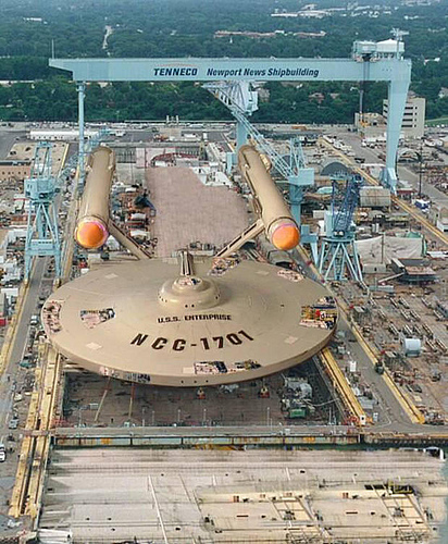but in the 60s show the Enterprise was built in san fran near where starfleet headquarters was. but i am sure they did not build the whole ship but sections of it and had it assembled in space. as much as i loved the new movie the 'new' ship is SO big how the hell did they get it off of the planet's surface? also the 60s enterprise and the 'refit' in the move were only about 300 feet long end to end, and the Enterprise D was over 1000 feet long (you could place both the old enterprise within the diameter of the 'D' saucer section .