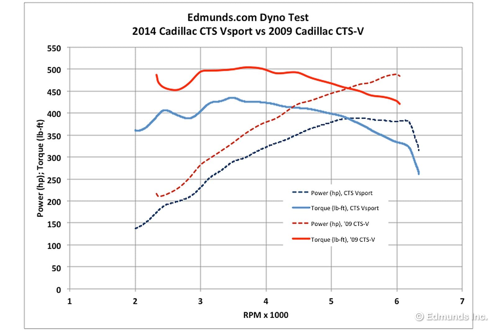 GM rated the CTS-V at 556 hp and 551 lb-ft at the flywheel. Here's how the CTS Vsport's LF3 stacks up to a stock auto-equipped 2009 CTS-V: