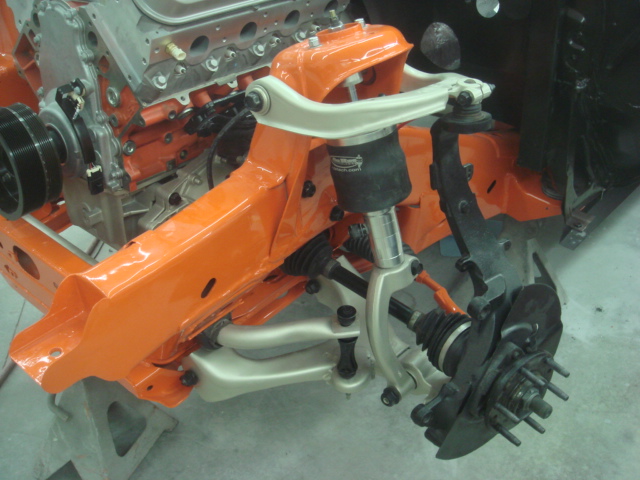 the trans and front drive is from a 2008 Trail Blazer SS 4L70E all wheel drive trans. I moved the seats back 11" to creat the 2 seater feel laid the windsiled down 6" and got a custom longer windshield so it matched the proportions.