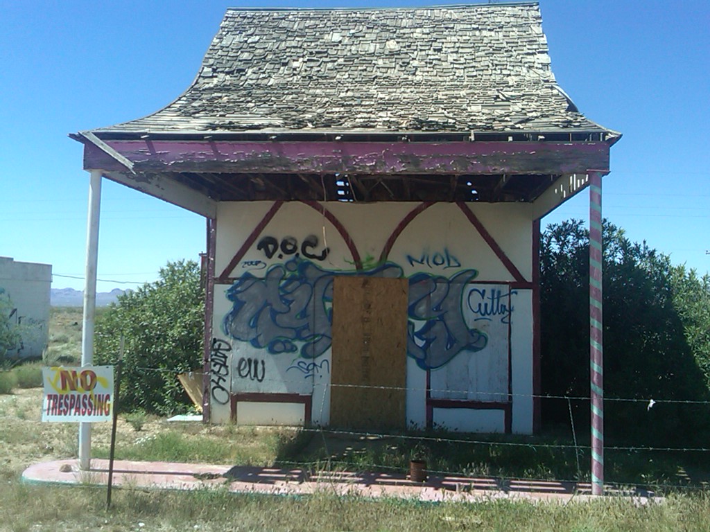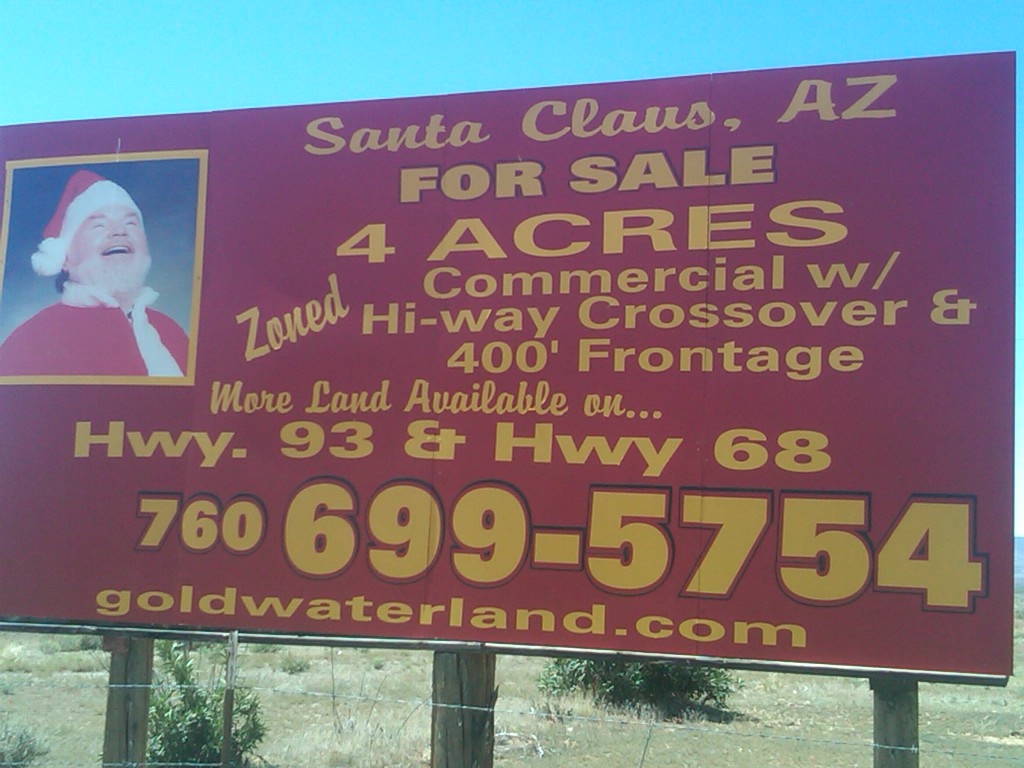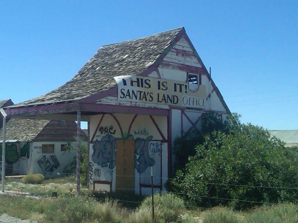 Santa Claus is an Arizona Ghost Town located on mile marker 57 on US 93 in Mohove County. The town was formed in 1937 with the primary industry being Christmas themed everything (kinda like Frankmuth Michigan without the fried chicken). Amazingly this whole thing lasted business wise until 1995 when the last shop shut down. In 2004 the town was abandoned and has largely disappeared except for a couple of old building in bad shape. Apparently you can still buy the land for about $52,000 dollars.
