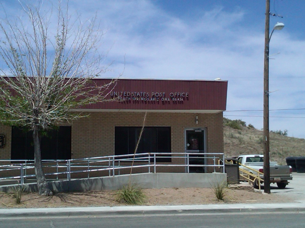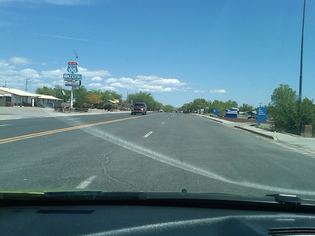 Peach Springs, AZ. This town is actually the largest on the Old 66 Route at 600 people. Its located on the edge of the Hualapai Indian Reservation....