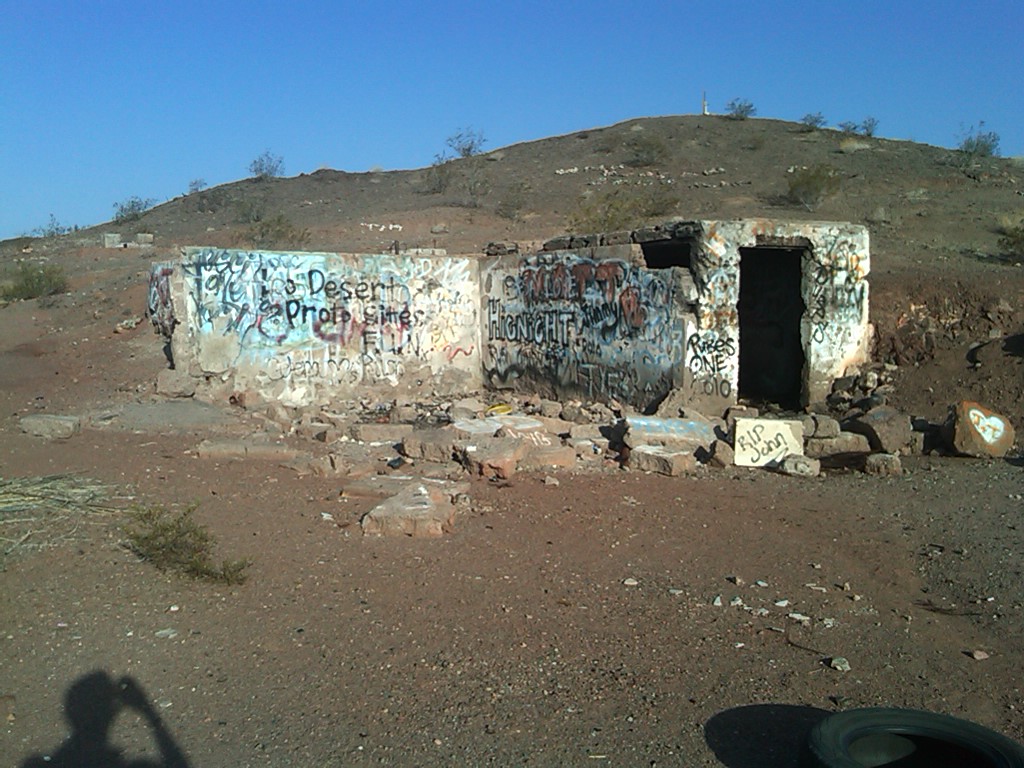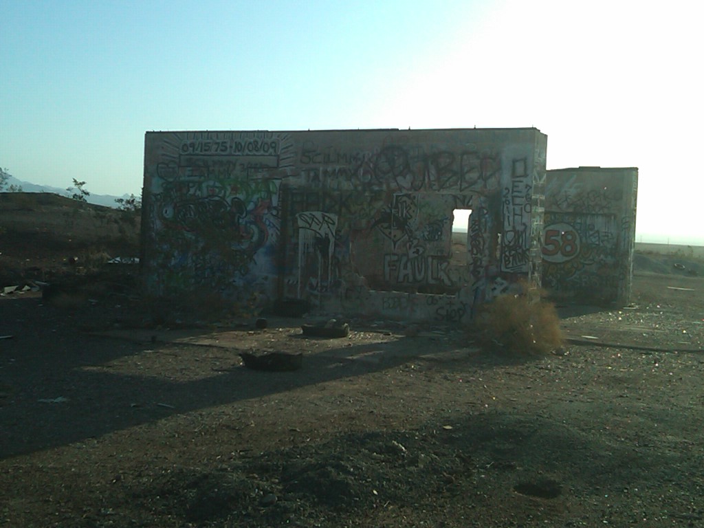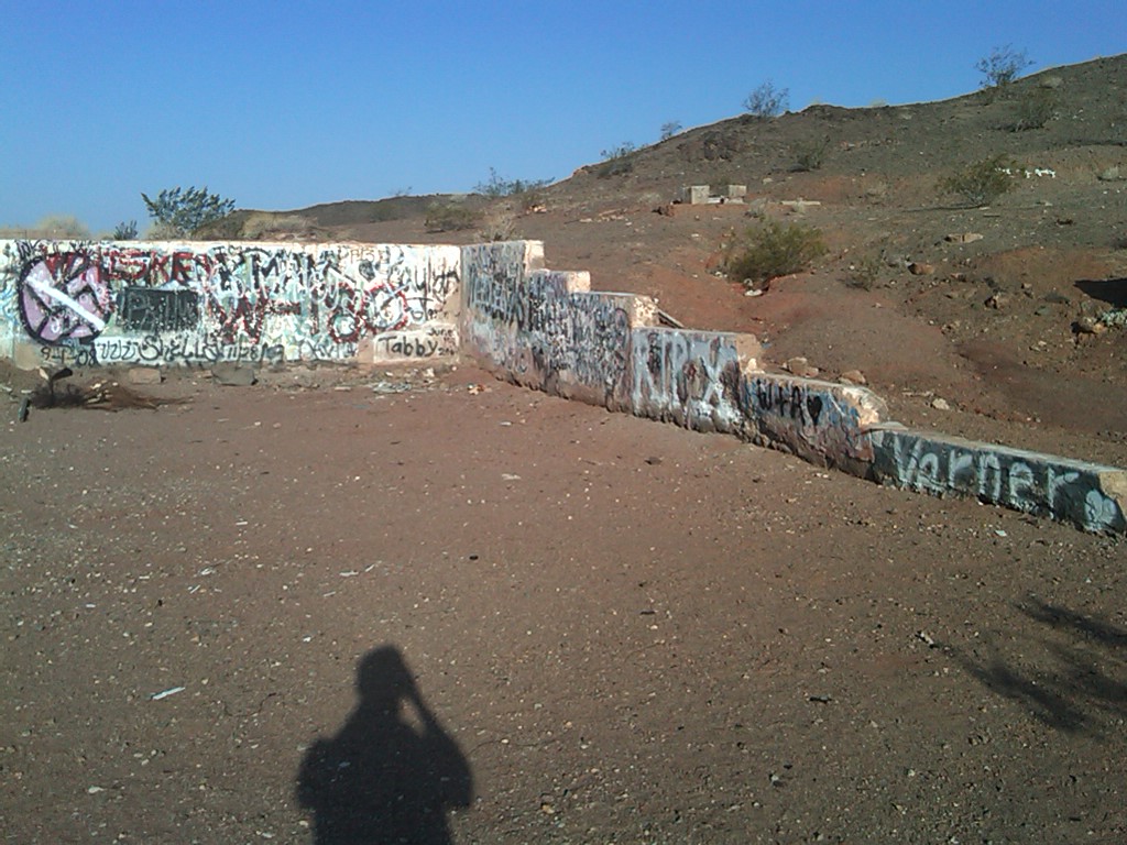 West of Bagdad is a lone standing wall of a building, the only remant of Siberia, CA. Siberia was also abandoned in 1973 and almost everything was removed in 2001.