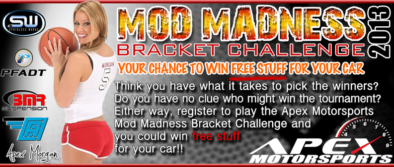 March means college basketball tournament time, and Apex Motorsports is challenging you to test your prognosticating abilities, your team research, expert analysis or just good old-fashioned luck.