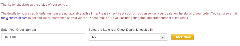 My order was at status 3300 last week (per Becky). It's been status queued for production on the Chevy Order tracking site. Today when i checked the site I get this message. Anyone know why?