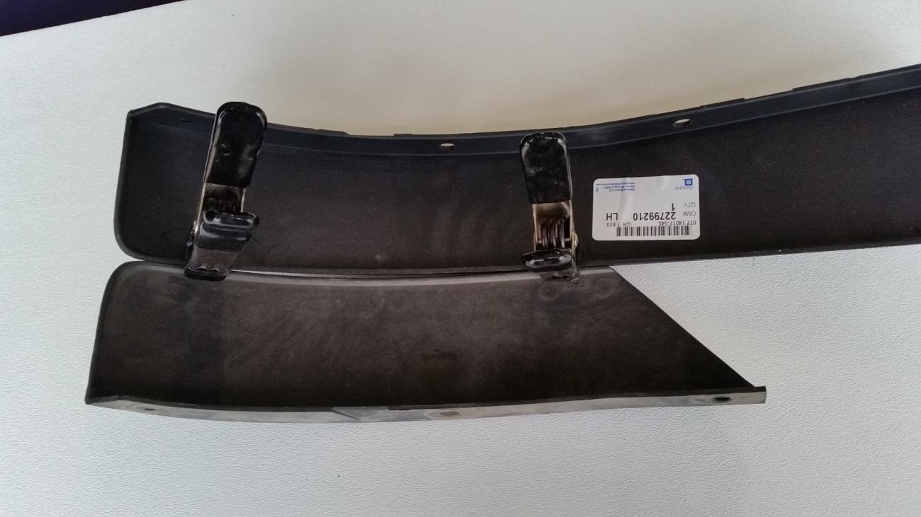 First off, there appears to be only one part number for each deflector in front of the tires, and it is the same for both base Stingrays and Z51s. The driver side is #22799210 and the passenger side should be #22799211. The molded pieces are direct bolt-ons for base cars, and use 4 screws each. For those with Z51 cars, you will need to trim the new piece to match the original, and will only use 3 screws. Here's how I did it: