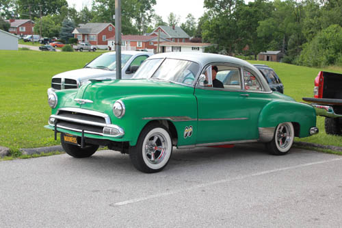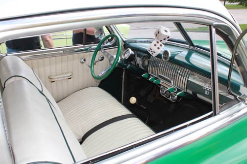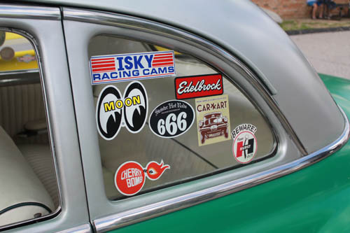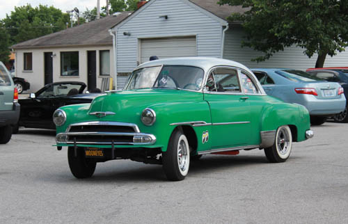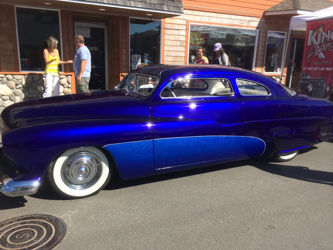 Every Sunday, there is a gathering of cool cars at an old-time burger joint. You see all kinds of cars there - everything from Model T Fords, to modern muscle. My favorite is this extremely cool 1951 Chevy. It's a real hot rod, done up gasser style. It sounds soooo good, and you can hear those fender well headers a mile away!