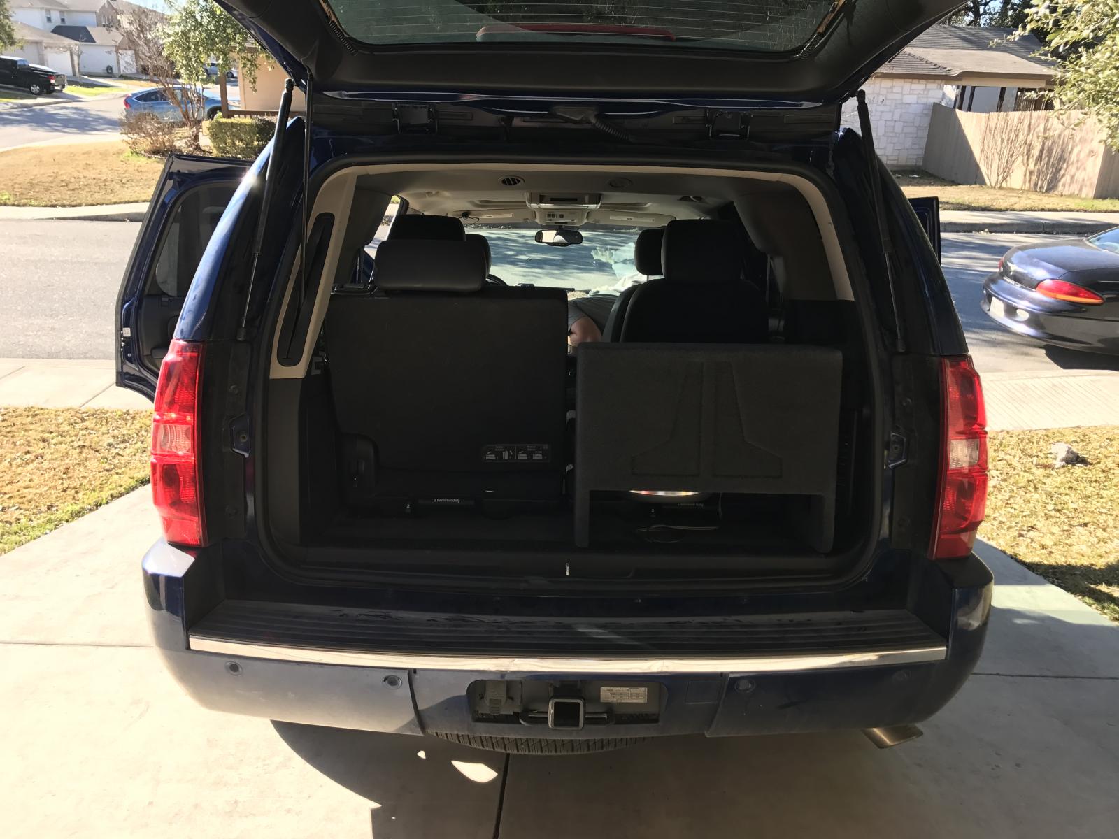 Went back to my Custom Sounds. Talked to the new manager (who owns a new 2016 SS btw....met him in a parking lot at our local grocery store, got to talking Camaros, and found he was the new manager at the store...SWEET), and got hooked up with a new JL10"W7 anniversary edition. He tells me....btw, you can send in your old JL if you want to have it refurbished for $250....shipping included. "No kidding?" What the hell...why not. He says it'll take three months to fix, they'll get it back and call me when it comes back to the shop. Works for me. They get it back and what do I do with it? DUH!!! Put it in the wife's TAHOE! ![]() Get this, custom box behind the third row. Built with handles so it's easily removable should we go on family trips and need that extra room for luggage, etc. It's also got a quick disconnect. On top of that, it fires downward and they left enough room for my hands to be able to reach in under the box to actually use the levers to make the third row functional. Freaking SWEET. Tossed in a JL 600/1 amp, an audio controller, the bass knob, some thick as sh!t amp and speaker wire and voila, off we were. I am beyond floored at the fit and finish of the install and sound. Nick did me wonders on this one and I'm 100% satisfied. Check it out... |