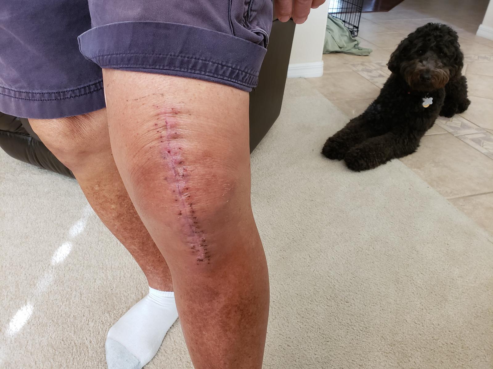 Left knee done about 4 years ago now. Age 68.I'm due for the right but I moved and just haven't found/looked for a surgeon up in Michigan. I had my knee replaced in Florida. You cannot wimp out on the therapy during the initial few weeks. A few pics...