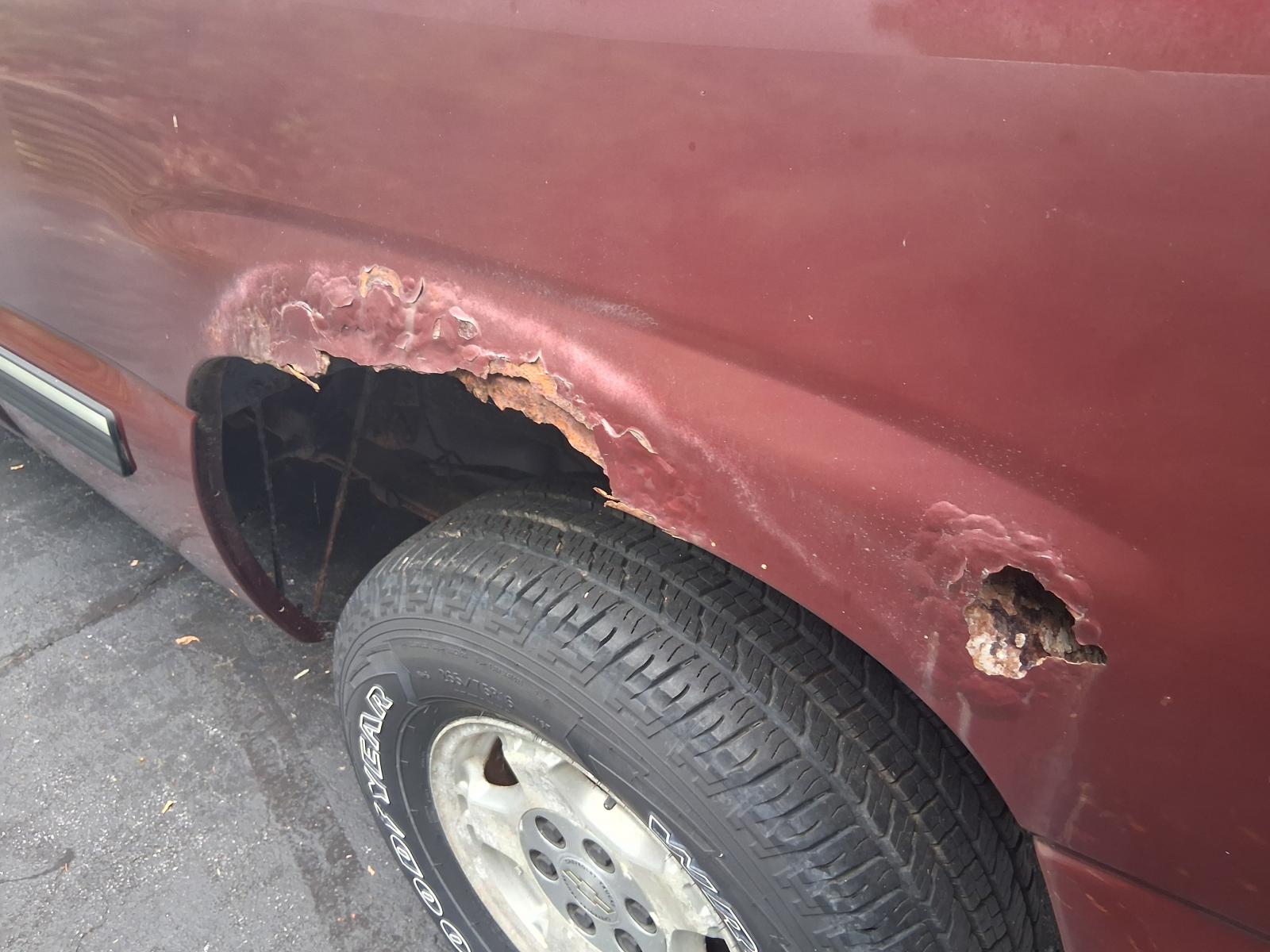 I work for a body shop and I've seen a few of these come through and this thing is not so great. The replacement bedsides from GM are 1000+ per side PLUS it needs outer wheel house panels too...it's a lot. There's full rust free beds on marketplace for 1000-1600 that just need re sprayed. So I'll probably end up going that route. I have a BNIB tailgate already that has a small ding that we can fix in like 5 minutes along with some new emblems (photos soon). In other ways of making this thing look a little better, I procured some new wheels as the OEM wheels are so corroded that none of them hold air. Those Goodyears are brand new so I'll swap them onto these wheels and run them till they're shot. I'd like to do a small lift (2-3") and then step up to 285/75 All Terrains for a tougher look.