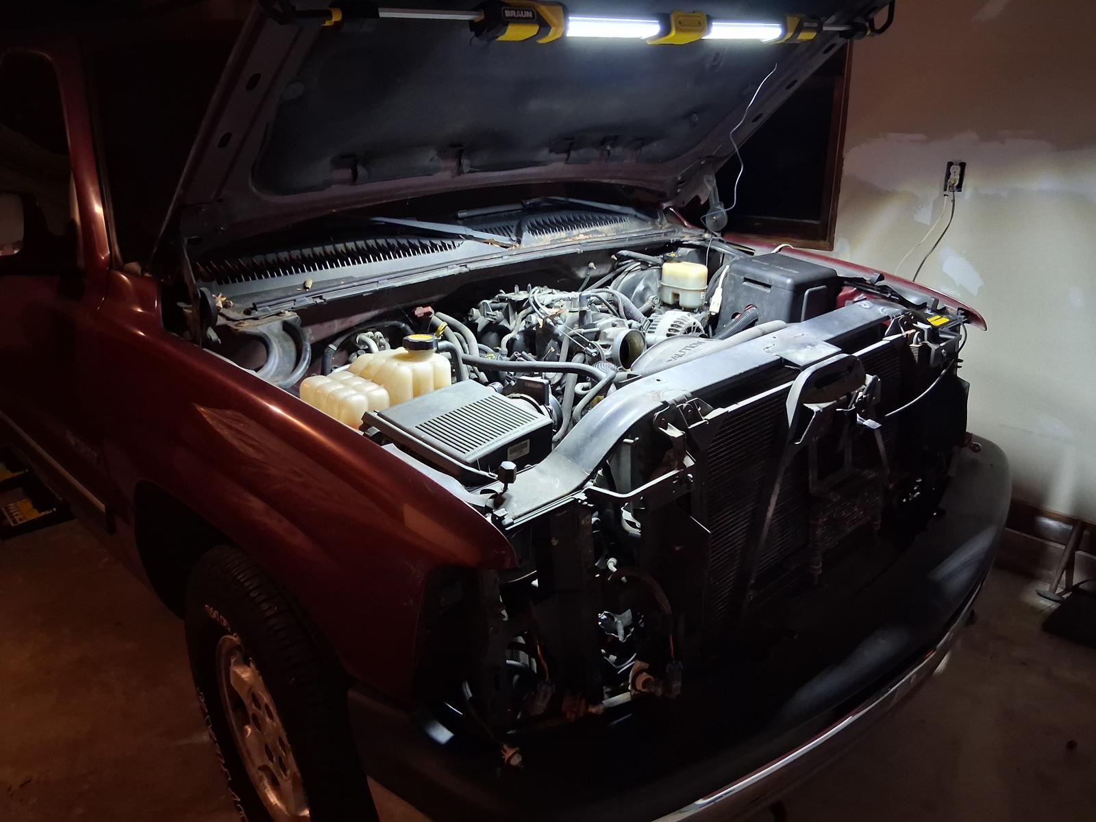 Started to dig into her a little bit, took the grille off as I'll be replacing it with a different version. The sight shield, VORTEC engine cover and other plastics were taken off, cleaned and stored in my basement for now.
