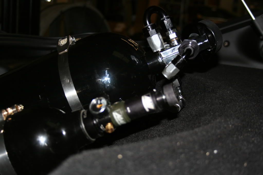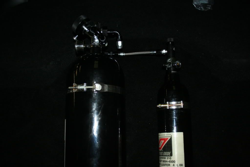 The kit consists of: *Custom Nitrous Outlet dual plate system. *15 lb bottle. *Competition NANO System (supports up to 550hp). *Custom Bottle Mount. *Remote Bottle Opener. *Custom switch panel. *Nitrous Outlet Dedicated Fuel System. *Dual Purge. *Nitrous Outlet Progressive Controller. This beautiful car was brought to me by a customer. He formally owned a 9second 4000lb 2000 WS6 TransAm that he could drive every day. ![]() The first thing I did was make the lines for the plates. Because the Viper uses dual throttle bodies, the lines must be exactly even and centered to insure the nitrous and fuel hit the cylinders at the exact same time. ![]() I made a template for the bottle mount out of cardboard and traced it on to a sheet of plywood.......all the edges were cut at a 45* to insure a flush fit. The bottle mount removes from the car in about 2 minutes to give the customer complete access to his trunk...... ![]() Here are the bottles mounted on the plywood......I have to get everything mocked up before I carpet the board. ![]() ![]() Then I drilled access holes to run the switch panel wiring.... ![]() Spent most of Wednesday making a wiring diagram for the system incase there is ever a problem down the road, we know what color wire goes where, then had to stop and tune a car I had scheduled..........Today, I wired up the switch panel and the remote bottle opener. Everything has quick disconnect connectors and so the system is completely removable (should he ever decide to take it off the car). Back of the switch plate: ![]() Quick disconnects from the switch plate. The wires that run to the front of the car are on one connector, and the wires for the rear are on the other. ![]() ![]() We mounted the dedicated system using rivits, they provide a much cleaner look than sheet metal screws. ![]() We also drilled a hole in the firewall to run the nitrous feed line from the cabin to the solenoids. ![]() I ran the -6 feed line. It's run on the passanger side through the firewall and graumeted so that the metal doesn't chafe the line ![]() I carpeted the the board that holds the bottles....... ![]() ![]() ![]() and wired in and mounted the progressive controller ![]() Here are the solenoids mounted in the engine bay. ![]() And we put the interior all back together ![]() And the Results: The Viper has been tuned and sprayed....... I picked up 17hp and 10tq with just tuning on the motor.... ![]() And this thing went nuts on the 250s. I think this is the most anyone has seen on a 250 shot. It went rich at the end. I think his NANO was low. He is getting it filled and we will try again. If does it with a full NANO I will drop one size on the fuel pills.