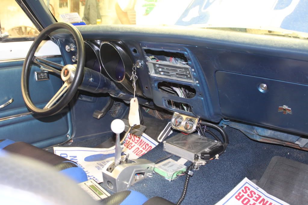 Late last July a white 67 Firebird was towed to our shop as a shell with the request we install an unseen motor and transmission. Allow my to describe shell. It had nothing in it no seats, no carpet, no glass, no dash, no door handles just a steering column laying on the floor that you had to hold up to steer. There was no wiring anywhere on this car the owner and stripped all of the original wiring out. He had pulled off all the original knobs, pulled the window tracks and crank handles. It had no rear brakes on the stock rear end and only rotors and calipers on the front no lines, and those were not even installed correctly. Basically this was a pile of sheet metal and nothing else. 3 days after receiving the car we get the motor, a fully built 502 with an Edelbrock EFI kit. 2 days after that we get a turbo 400 trans. We had to custom make our own motor mounts and trans cross member as the car came originally with a 2 speed. After we got the motor and trans in the car the owners father decided it would be easier to just let us finish the work rather than his son and his son's friend work on it at home. So for the last 7 months we have been slowly building and rebuilding this car. Put a non-locking Ford 9" with 28 spline axles in it, we tried to explain that was not a good rear end for that motor but they stuck with it as they had already bought it. We installed a complete painless wiring harness in it everything from the headlights to the taillights was wired up, put in all the glass and even gave it electric windows. We got it up and running and street legal the day before thanksgiving and personally delivered it to the customer. He drove it for a few days and parked it in his garage until mid January when he brought it back to us because "the back tires don't do anything but spin". The customer told us he wanted us to do whatever we thought was best to make it stick. We have since installed front and rear sway bars, new rear 2 piece springs, cal track with new shocks, and a wavelok third member with 38 spline axles. It is still running the 235/17 tires it came in with but the customer is supposed to be bringing us a set of 305 nitto's. This car has been a blast and a pain at the same time, it is awesome to look back at where we started and where we are today and how much more can/could/will be done. This car is making in the neighborhood of 650+ at the wheels, just talked to the engine builder yesterday who said the motor made 793.3 on his engine dyno. All in all this is a MONSTER of a Firebird and its things like this that make my job so much fun.